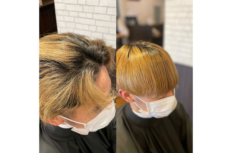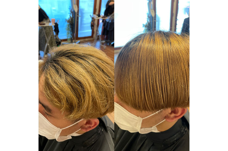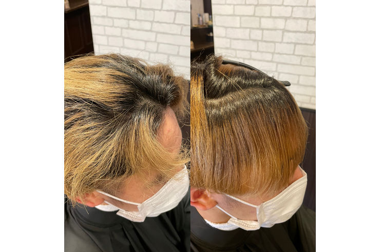 ブリーチによるハイダメージと根本の強い癖を同時にケアできた