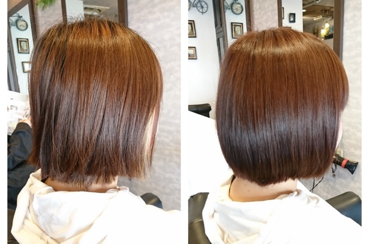2020/10/09みなさんこんにちは(≡^∇^≡) 佐世保 美容室 PLAYのブログです! 今回のブログはスタイリストの中野が担当させてもらいます(゜∇^d)!! 今回は、 当店(佐世保の美容室PLAY)オリジナル 髪質改善メニュー 髪を短く切ると広がる人にオススメの 『質感チェンジ』(クリック) を施術したお客様の紹介をしていきたいと思います(*^▽^*) ↓ ↓『before』↓ ↓ -