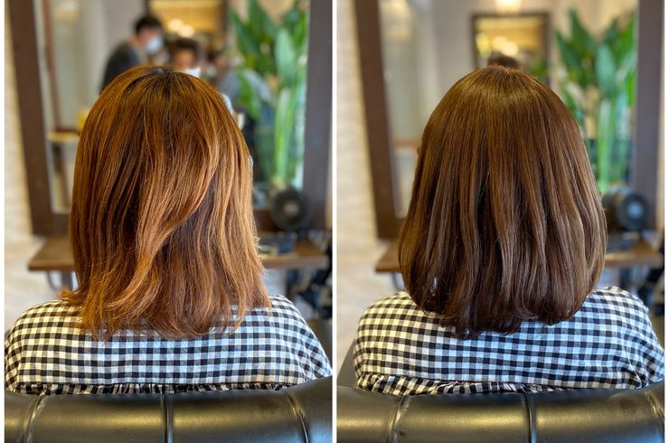 2020/07/26みなさんこんにちは(≡^∇^≡) 佐世保 美容室 PLAYのブログです! 今回のブログはスタイリストの中野が担当させてもらいます(゜∇^d)!! 今回は、当店(佐世保の美容室PLAY) 髪色の赤みが気になる方にオススメの、ツヤ感アップのダメージレス抗酸化カラー 『アドミオカラー』(クリック) を施術したお客様の紹介をしていきたいと思います!( ̄- ̄)ゞ ↓ ↓『before』↓ ↓ -